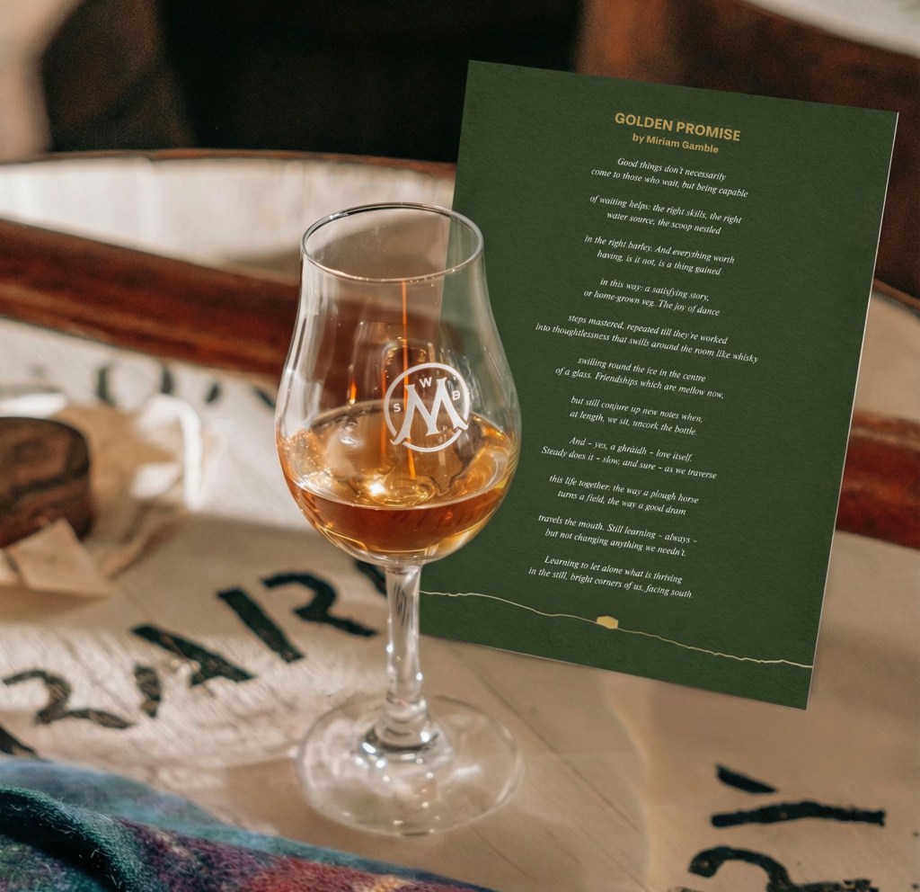 Written by Miriam Gamble, Golden Promise takes its name from the heritage barley variety used in Aberargie’s inaugural whisky. The poem explores how time, repetition and restraint shape what is most worth having, from friendships and love to the slow transformation of grain into spirit.